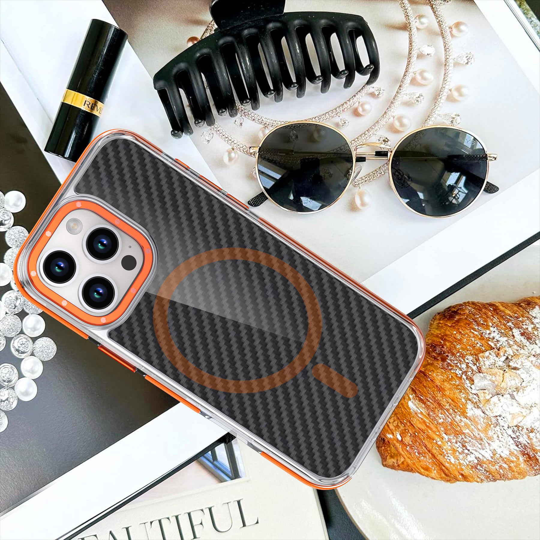 Elevate your device with the Carbon Fiber Style Neon Bumper Magnetic Protective Cover Case—meticulously designed for Apple iPhone 16. Merging style and function, this premium case displays a striking carbon fiber texture accented with bold neon highlights to make your phone stand out. The magnetic design ensures MagSafe compatibility for hassle-free charging and seamless accessory attachment. Engineered for robust protection, the case features a shock-absorbing bumper that shields your device against drops and scratches, all while maintaining a slim, lightweight form factor. Every detail is considered, from precise cutouts for unfettered access to ports and buttons, to a design that preserves your phone’s elegant silhouette. Upgrade your daily phone experience with the perfect blend of durability, convenience, and sophisticated style for your iPhone 16.