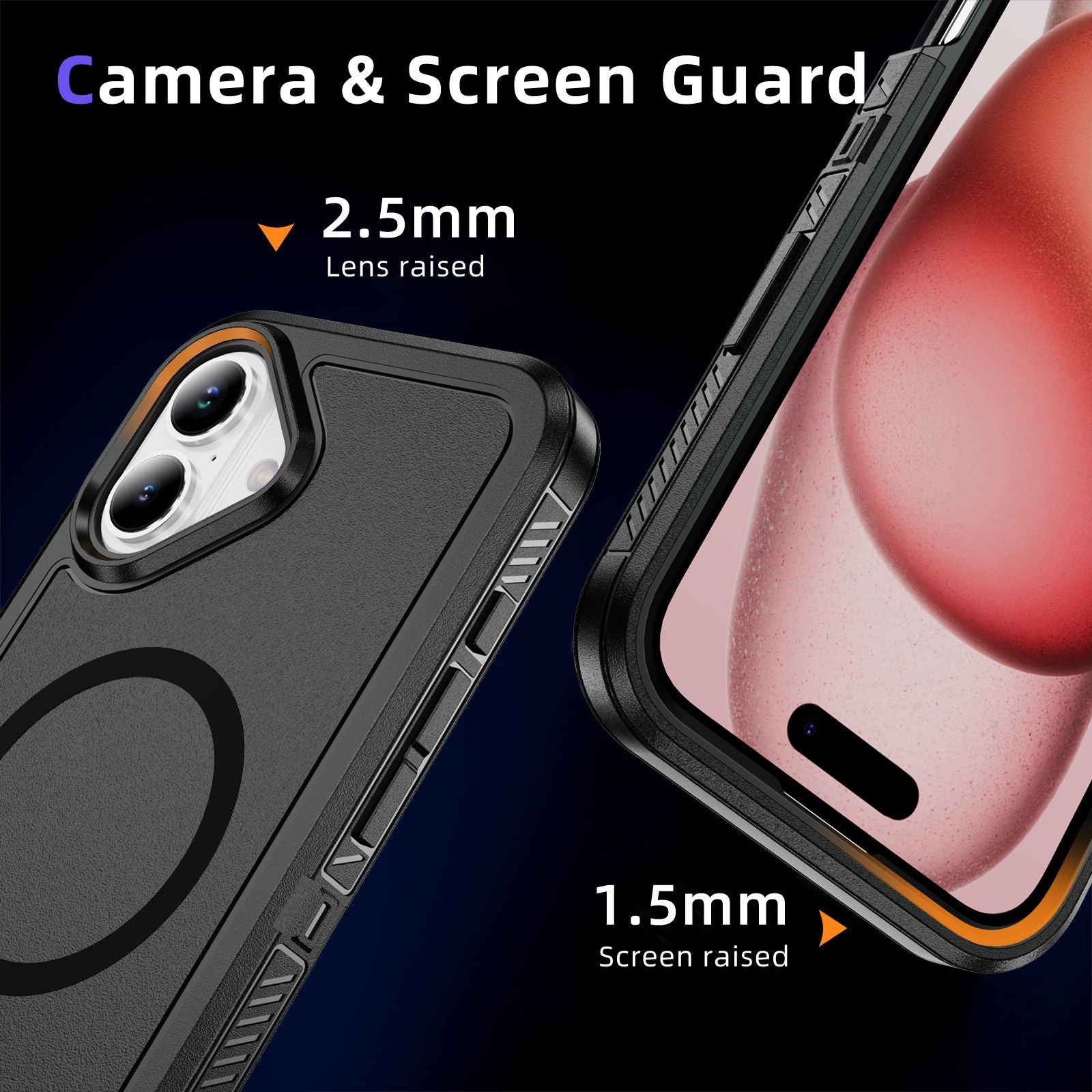 Experience the ultimate in protection and convenience with this Rugged Guardian Defender Armor MagSafe Case, designed for the Apple iPhone 16. Built with a robust hybrid construction and premium liquid silicone, it offers enhanced shock absorption and a silky, anti-fingerprint grip. The integrated magnetic ring, featuring 36 secure N52 magnets, delivers optimal MagSafe charging without removing your case while guaranteeing long-lasting magnetic performance. Raised edges safeguard the camera and screen, while hollow design buttons allow effortless access. Perfect for users seeking reliable, stylish, all-around protection without adding unnecessary bulk.