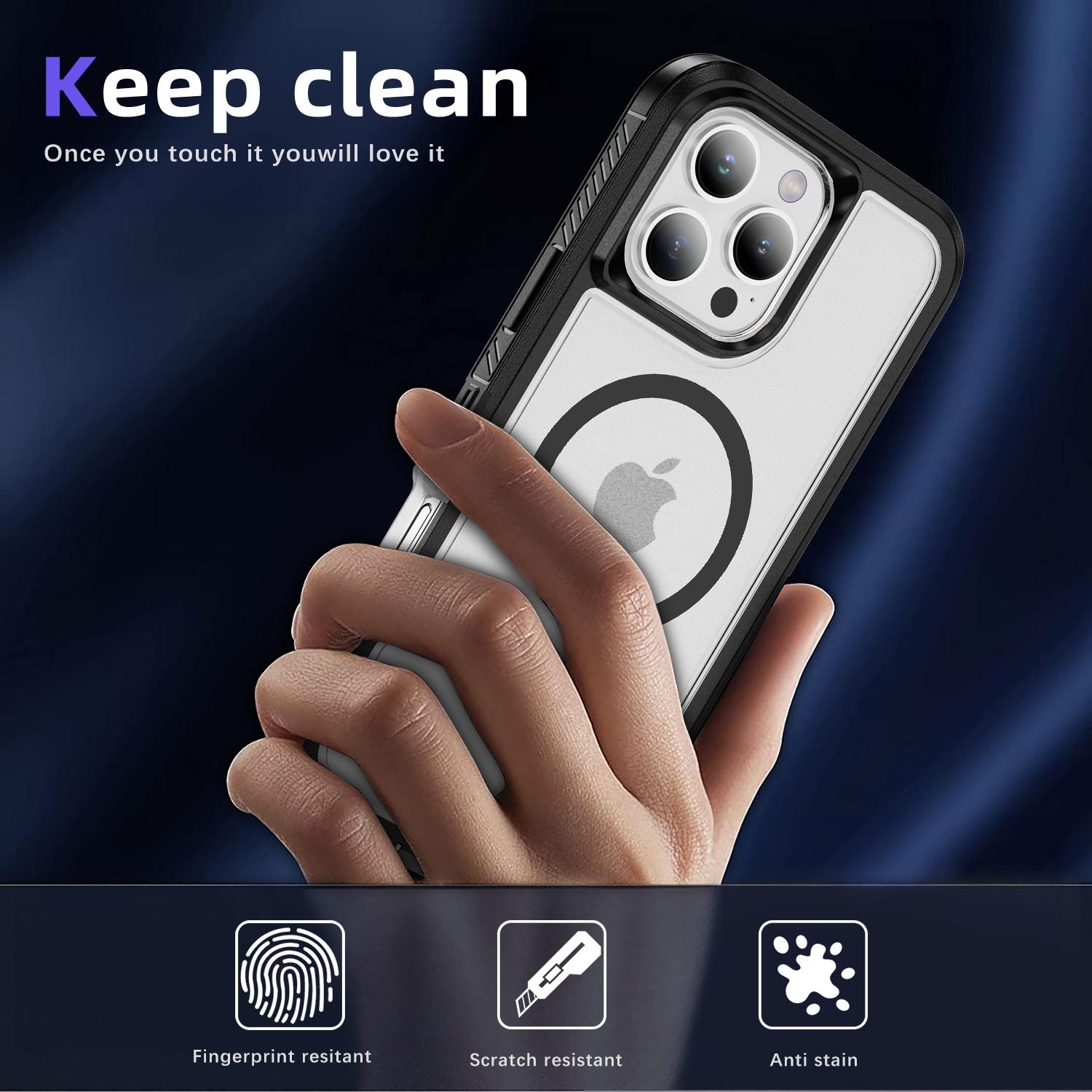 Safeguard your Apple iPhone 16 Pro with the Heavy Duty Rugged Guardian Defender Armor MagSafe Case—a professional-grade protector engineered for ultimate performance. Featuring integrated MagSafe technology with a perfectly aligned magnetic ring and 36 powerful N52 magnets for reliable wireless charging, this case maintains a firm hold on your device. Premium liquid silicone provides a smooth, fingerprint-resistant finish, while the hybrid armor frame and raised edges shield against impacts, scratches, and daily wear. Thoughtfully designed with accessible hollow buttons and rounded edges for optimal comfort and usability, this dustproof, anti-scratch cover keeps your phone safe without bulk. Ideal for those who demand durable, reliable protection for their Apple iPhone 16 Pro.