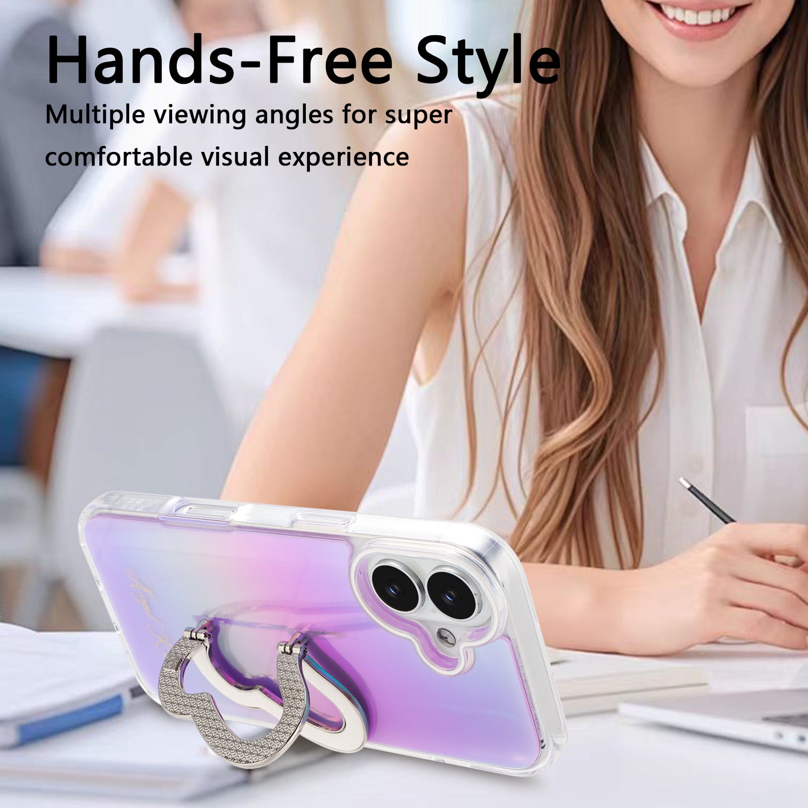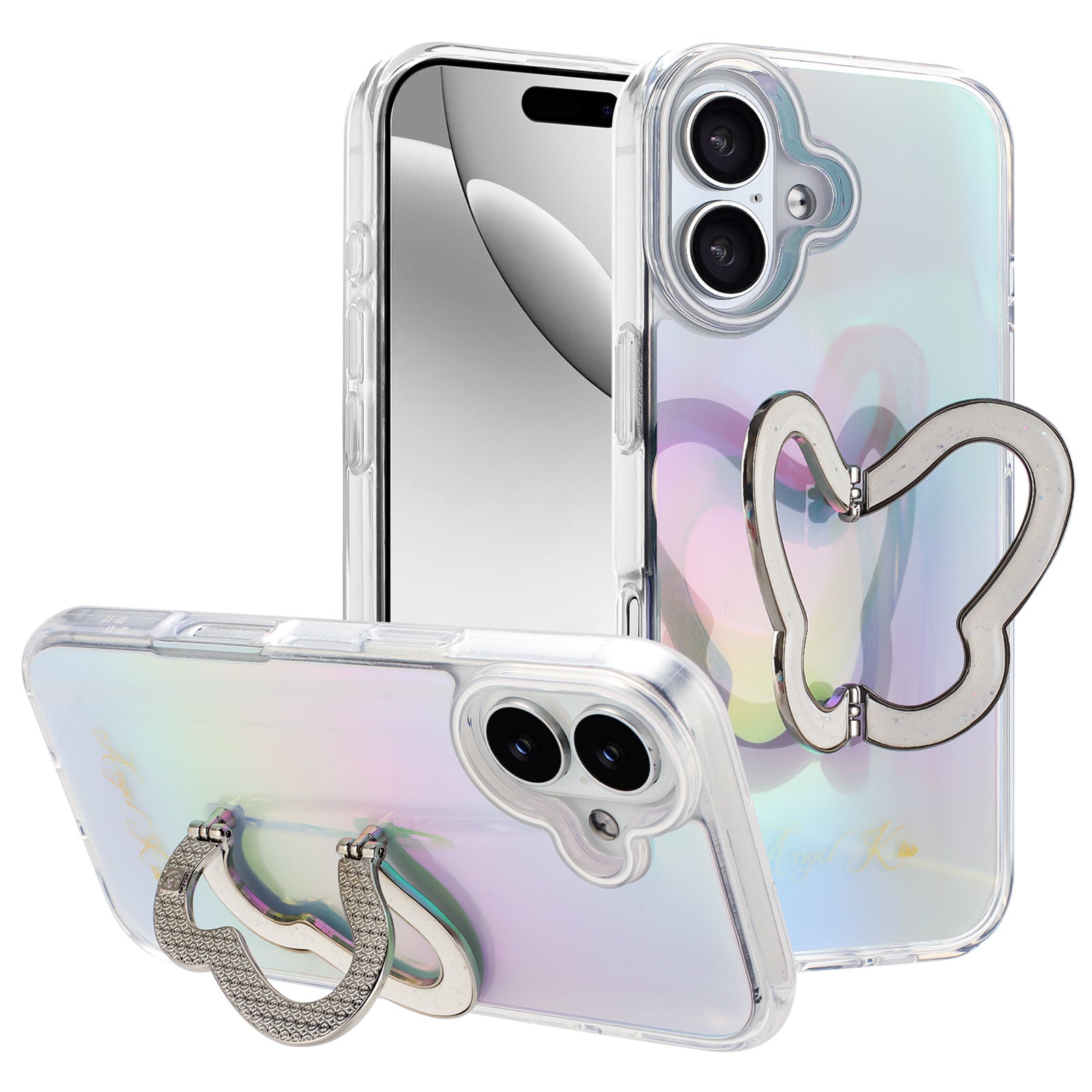 Elevate your Apple iPhone 17 with this Glitter Butterfly Kickstand Phone Case, featuring a dazzling diamond butterfly stand and a stunning rainbow gradient. Designed for superior protection, its durable shock-absorbing construction shields your device from scratches, drops, and daily bumps. The built-in kickstand lets you watch videos or video chat hands-free, doubling as a secure grip for extra confidence. With a slim and lightweight profile, your phone stays stylish and easy to carry. This case is the perfect blend of eye-catching fashion and practical function, ensuring your device looks great and stays safe wherever you go.