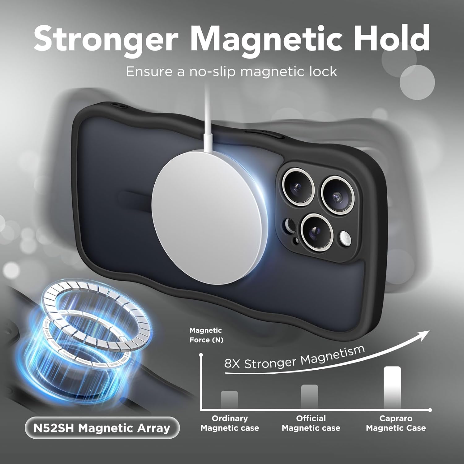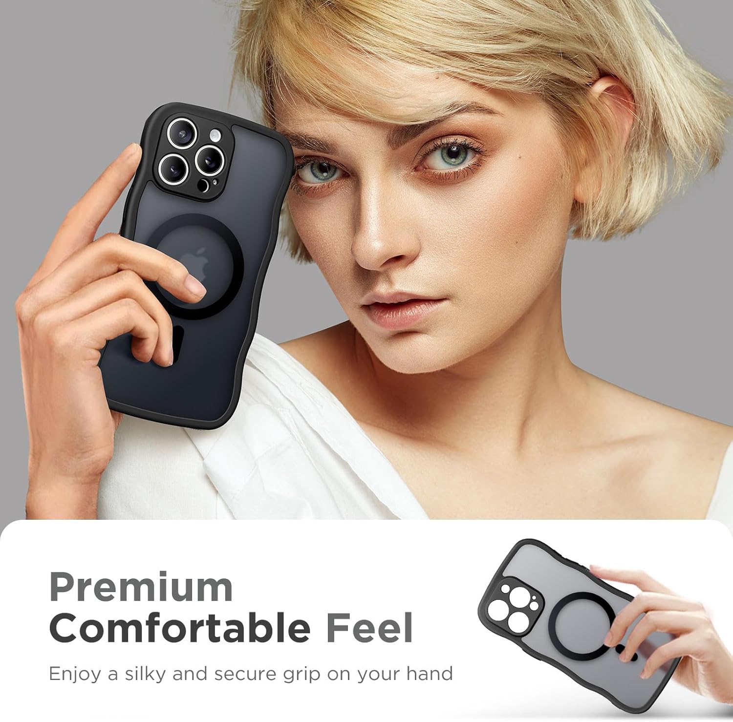 Elevate your Apple iPhone 16 Pro Max protection and style with this Curly Wavy Design Grip Matte Translucent Phone Case. Built for daily demands, it features an integrated magnetic MagSafe ring, ensuring effortless wireless charging and accessory compatibility. The tactile, wavy sides enhance grip to prevent slips, while the advanced camera edge protection shields your lens from bumps and scratches. A striking smooth matte translucent shell adds modern flair without hiding your phone's design, and the lightweight yet shock-resistant construction absorbs impacts to keep your device safe. Enjoy the perfect balance of slimness and reliable durability—ideal for those who want function, fashion, and peace of mind in one premium case.